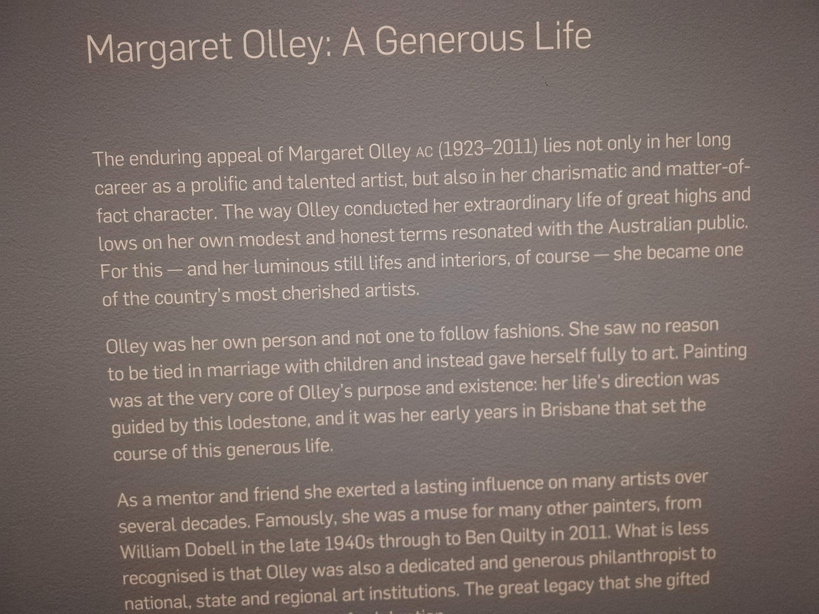 | Vera & I visited the Gallery of Modern Art at South Brisbane's Cultural Centre. We did a guided tour of the Margaret Olley exhibition. |